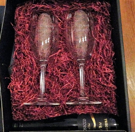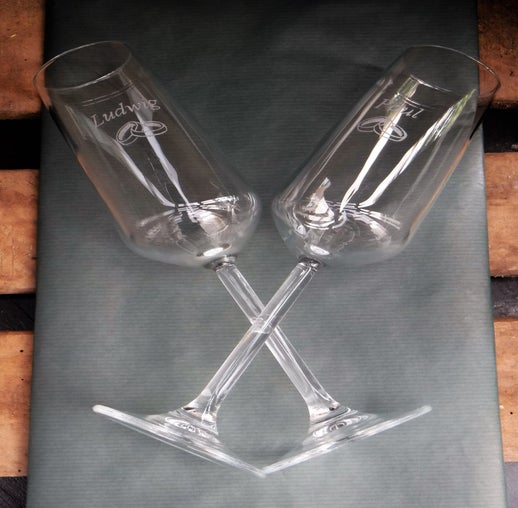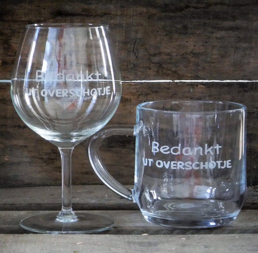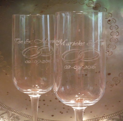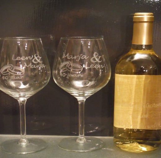 D r i n k g l a z e n zijn persoonlijk gemaakt met een handmade gravure.