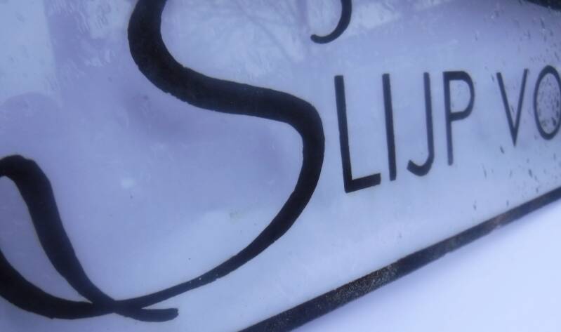 Ons bordje hangt namelijk expres in de volle regen, zon, weer en wind.